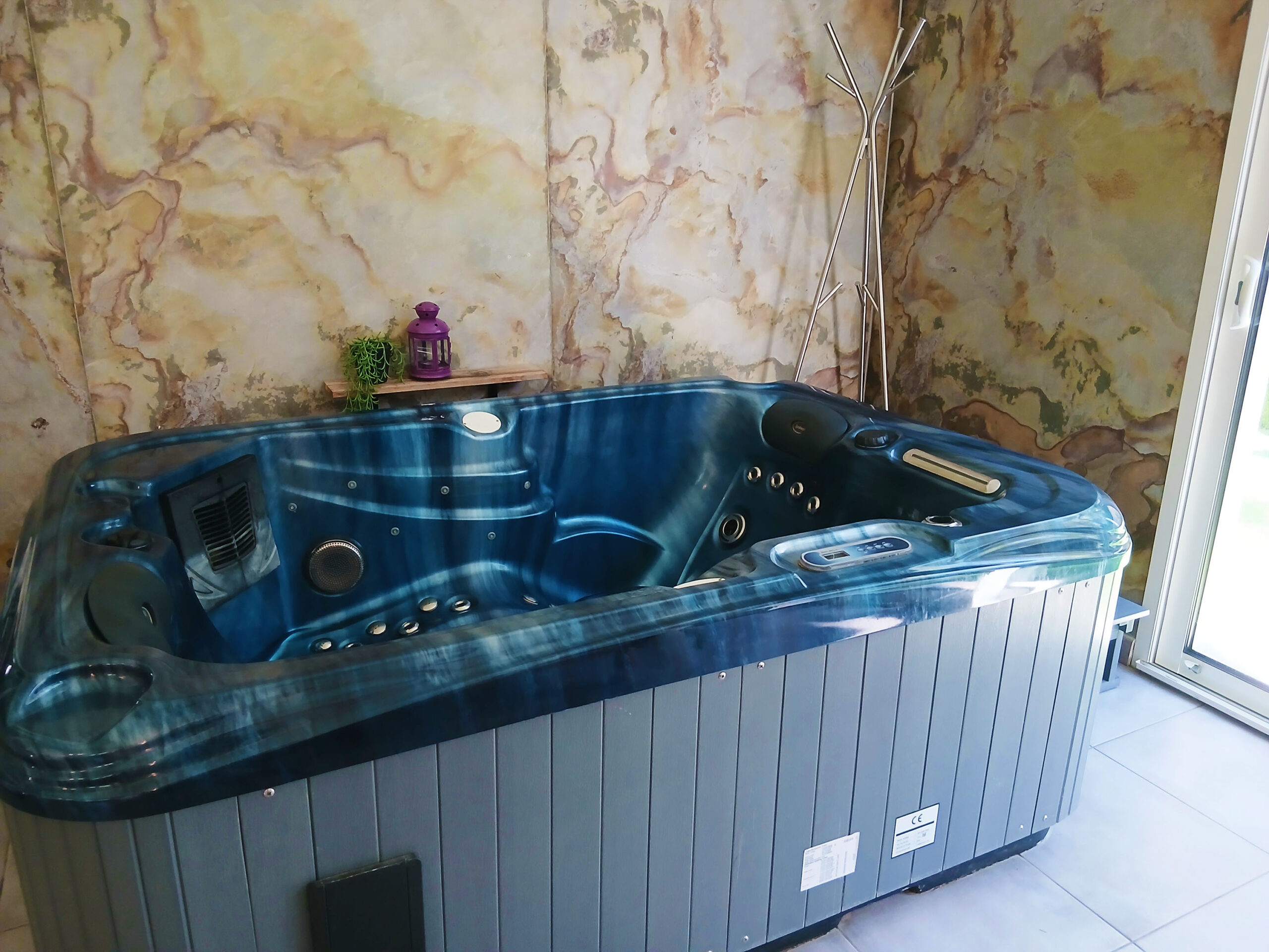 21,68 m² équipé d’un jacuzzi (deux places, 58 jets, 14 LED, positions allongées opposées) et d’un lit Queen size à baldaquin pouvant servir de 4ème chambre d’appoint